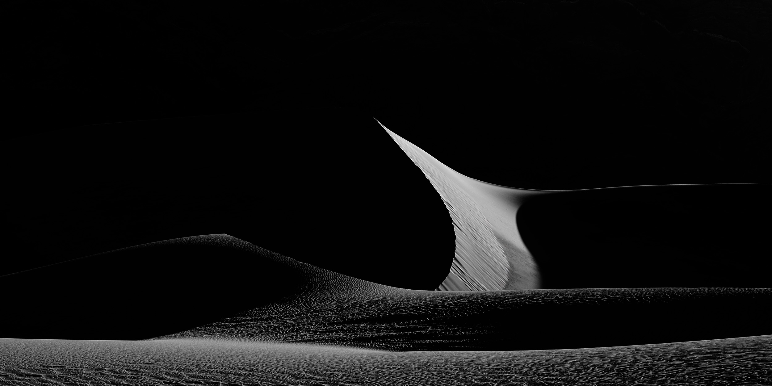 A single ridge ignites in the dark—sharp, clean, and fleeting. Blade of Light captures the moment the dunes turn into pure geometry, carved by wind and revealed by sun.
